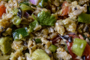 - Desmenuza el tofu con las manos en migas